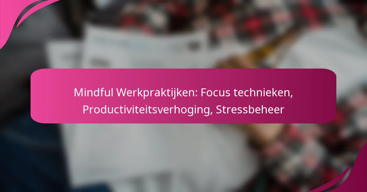 Mindful werkpraktijken zijn essentieel voor het verbeteren van focus, productiviteit en stressbeheer in de snel veranderende omgeving van vandaag. Door bewustzijn en aanwezigheid te cultiveren, kunnen...